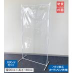 ビニールカーテン 【スタンドセット】 幅90cm×高さ180cm 0.3mm厚 防炎 抗菌 透明 ハトメ加工 カーテンリング付き ビニールシート