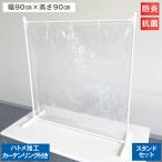 卓上パーテーション【スタンドセット】幅90cm×高さ90cm 0.3mm厚 防炎 抗菌 透明 ハトメ加工 カーテンリング付き