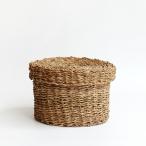 バスケット かご 収納 シーグラスの蓋付きバスケット Lサイズ 水草 ハンドメイド 小物入れ おしゃれ