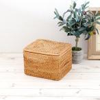 ベトナムラタン製 フタ付きバスケット 小物入れ /サニタリー収納 ナプキン収納 ふた 蓋 玄関 アジアン かご バスケット 籐製 ラタン バスケット ナチュラル