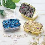 ピルケース アクセサリーケース アイラッシュケース ミラー付き 花柄 花 ナチュラル ボタニカル リーフ レトロ 蝶々