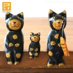 バリネコS(親子)釣り(ブラック) アジアン雑貨 バリ 猫 置物 グッズ プレゼント 人形 木製 木彫り ココバリ