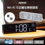 Wi-Fi対応 LEDクロック デジタル時計 置掛兼用 SLOWER 置き時計 掛け時計 温度表示付き カレンダー アラーム スヌーズ機能 USB対応 電池 おしゃれ コンパクト