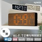 Wi-Fi対応 LEDクロック デジタル時計 置掛兼用 SLOWER 置き時計 掛け時計 温度計 リモコン付き アラーム スヌーズ カレンダー タイマー USB対応 大画面 おしゃれ