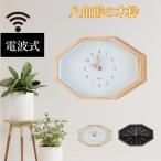 掛け時計 電波時計 壁掛け 北欧 おしゃれ 音がしない 夜光蛍光 木製 ウッド 天然木 ウォールクロック インテリア 八角形