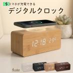 目覚まし時計 デジタル 置き時計 スマホ充電 ワイヤレス おしゃれ 音感 振動 USB 電池式 スヌーズ アラーム LED 曜日 温度 明るさ調節 北欧