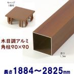アルミ角柱 木目調 90角L2825mm 厚み1.3mm チーク キャップ1個付 支柱 角パイプ