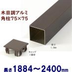 アルミ角柱 木目調 75角L2400mm 厚み1.3mm ダーク キャップ1個付 フェンス 支柱 角パイプ