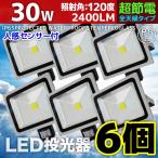 人感センサーライト LED投光器 30W 6個セット 300W相当 防水 防雨 昼光色 3mコード付 防犯 作業灯 駐車場灯 屋外 照明 A42SCSET6