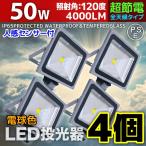 人感センサー LED投光器 ワークライト 50W 4個セット 500W相当 防水 防雨 昼光色 電球色 3mコード付 防犯 作業灯 駐車場灯 A42SDWSET4