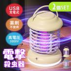爆買 電撃殺虫器 電撃殺虫機 2台セット 電気蚊取り器 捕虫器 UV光源誘引式 照明 ランタン LEDライト 吊り下げ 据え置き USB充電