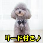 ハーネス リード付き チェック柄 格子柄 リボン 蝶ネクタイ