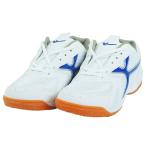 スクールシューズ 体育館シューズ 上履き 白 中学 ミズノ インドア ワイド 幅広 メッシュ アメラバー 屈曲構造 ホワイト×ブルー 50441