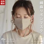マスク 綿麻 リネン 日本製 リボン 布マスク 立体 おしゃれ ファッション スムース 大人 caf-mk0007メール便送料無料