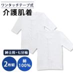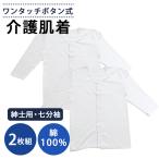 介護用 肌着 メンズ 2枚セット 前開き ワンタッチ テープ式 七分袖 インナー 綿100% 入院用 ホワイト 白 ONS-436444