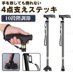 杖 ステッキ 4点支え 介護 自立式 歩行補助 10段階調整 4本足 自立杖 伸縮式 軽量 歩行杖 滑り止め 替えゴム コンパクト ブラック 黒