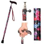 杖 折りたたみ 軽量 つえ 介護 おしゃれ 女性用 花柄 自立式 5段階調整 伸縮式 70cm ~ 80cm 収納巾着袋 4点足 LEDライト 婦人用 折り畳み 敬老の日 プレゼント