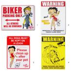 BETTY BOOP ベティブープ プラスチック サインボード バイカー専用駐車場 フン掃除 ペットの糞を後始末しよう 番犬に注意 24時間監視中 看板 メッセージ サイン