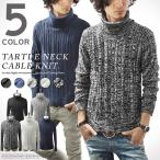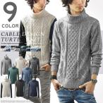 ニット メンズ ケーブル編み ケーブル セーター タートルネック フィッシャーマン 長袖 無地 スリム ショート丈 キレイめ カジュアル