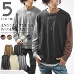 カットソー メンズ 長袖 ニットソー クルーネック ロンT レイヤード ワッフル ワイド シルエット 無地 トップス カジュアル M L