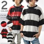 サマーニット メンズ 半袖 ニット カットソー ボーダー クルーネック ワイドシルエット BIGシルエット ショート丈 カジュアル