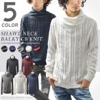 ニット メンズ 長袖 ケーブル編み セーター ハイネック ショールカラー タートルネック スリム ショート丈 カジュアル キレイめ