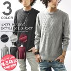 ニット メンズ イントレ編み 柄 ケーブル セーター クルーネック 長袖 無地 スリム ショート丈 キレイめ カジュアル 秋 冬 秋冬 服