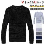 モヘアニット ニット ふわふわ セーター フィット メンズ フェザーヤーン モヘアタッチ Vネック Uネック 長袖 オシャレ
