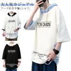 半袖 プルオーバーパーカ Tシャツ メンズ 半袖 レイヤード風 パーカー 半袖パーカ 重ね着風 フード付き ビッグシルエット ビッグtシャツ オーバー