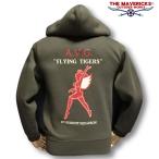 THE MAVERICKS ブランド ミリタリー ジップアップ スウェット パーカー 裏起毛 メンズ 長袖 AVG第三戦隊 オリーブドラブ