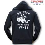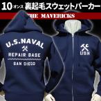 THE MAVERICKS ブランド ミリタリー ジップアップ スウェット パーカー 裏起毛 メンズ 米海軍 REPAIR BASE ネイビー