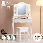 ドレッサー 化粧台 おしゃれ 収納 デスク 白 LEDライト ドレッサーデスク 鏡台 スツール付き セット 2way 一人暮らし コンセント モア