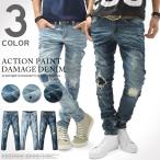 スキニーパンツ メンズ スキニー デニム パンツ ジーンズ ローライズ ダメージ クラッシュ 加工