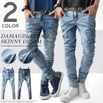 デニム メンズ スキニーデニム ダメージデニム クラッシュ バイカーデニム バイカーパンツ スキニーパンツ ストレッチ