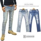 ジーンズデニム メンズ リペア ダメージ ペンキ 細身 ストレッチ デニム アンクル スキニーパンツ スリム タイト
