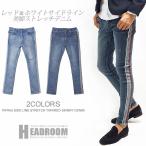 ジーンズデニム メンズ テーパードパンツ サイドパイピング白ライン ストレッチ デニム アンクル スキニーパンツ