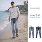 ジーンズデニム メンズ スキニーパンツ テーパード LAGLENT ストレッチ ユーズド加工 ビンテージ ストレート デニム