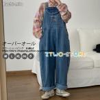 オーバーオール レディース つなぎ デニム 大きいサイズ ジーンズ サロペット オールインワン ストリート 春 夏 秋 ワイドルック 太め 刺繍