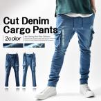 カーゴパンツ メンズ カットデニム デニムパンツ スウェットデニム スリム テーパード パンツ インディゴ 無地 カジュアル ストリート