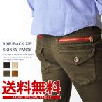 スキニーパンツ メンズ 綿サテン ストレッチ バックジッパー セール 爆買
