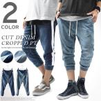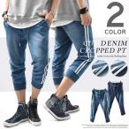 クロップドパンツ デニム メンズ スウェットデニム カットデニム スリム パンツ スウェットパンツ ライン スリム カジュアル