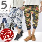 クロップドパンツ メンズ パンツ ジョガーパンツ 裾リブ リネン 麻 フレンチリネン 七分丈 花柄 カモ柄