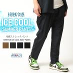 接触冷感 アンクルパンツ ズボン イージーパンツ メンズ 夏 リラックス UVケア ポリエステル ウエストゴム ドライストレッチ アイスクールパンツ 無地/爆買