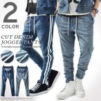 デニム メンズ セットアップ スウェットデニム カットデニム スリム パンツ スウェットパンツ ライン【sk-1】