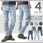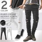 スキニーパンツ メンズ パンツ クラッシュ ダメージ 加工 スリム ストレッチ 5ポケット チノパン ブラック 黒 白 カジュアル