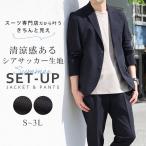 セットアップ メンズ スーツ シアサッカー 春 夏 カジュアルスーツ サマースーツ ストレッチ 洗える 涼しい 軽い ビジネス スリム 夏用 上下セット