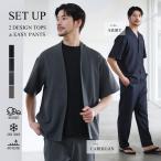 【上下2点セット】 セットアップ メンズ 春 夏 半袖 上下セット ノーカラー カーディガン オープンカラーシャツ イージーパンツ 防シワ 抗ピリング 接触冷感