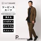 【スーツスクエア】メンズ PERFORMANCE SUIT ジャケット&パンツセットアップ ウォッシャブル 裾上げ済み カーキ系