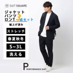 【スーツスクエア】メンズ PERFORMANCE SUIT ジャケット&パンツセットアップ ウォッシャブル 裾上げ済み ネイビー系