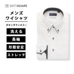 【スーツスクエア】メンズ ワイシャツ 長袖 ノンアイロンストレッチ ボタンダウンカラー BASIC ドレスシャツ ピンク